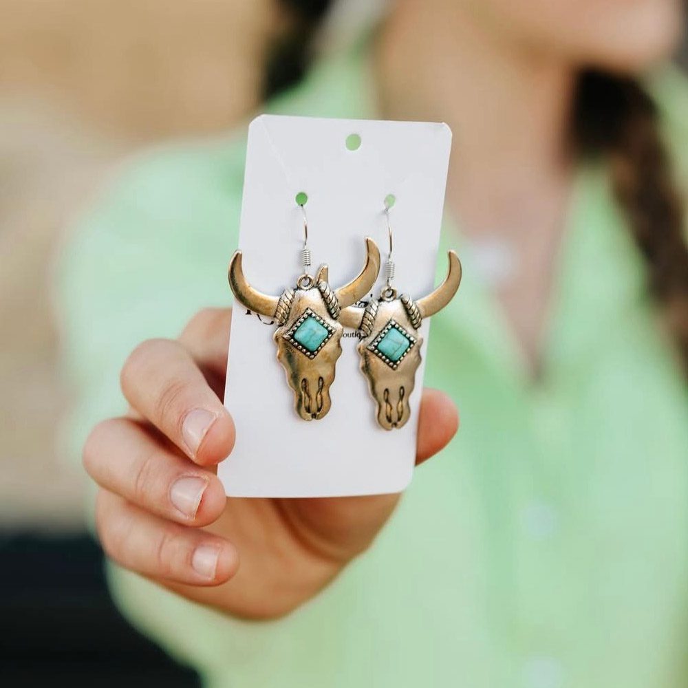 Channel your inner cowgirl spirit with these turquoise steer skulls. A rugged western twist with a pop of turquoise—tough, pretty, and pure Roughstock style.